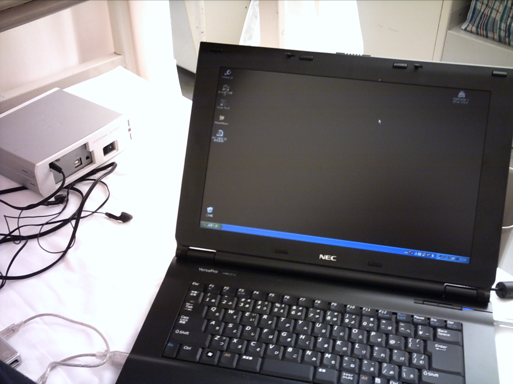これが買ってきたノートパソ 隣にあるのが映画など入れたHDD