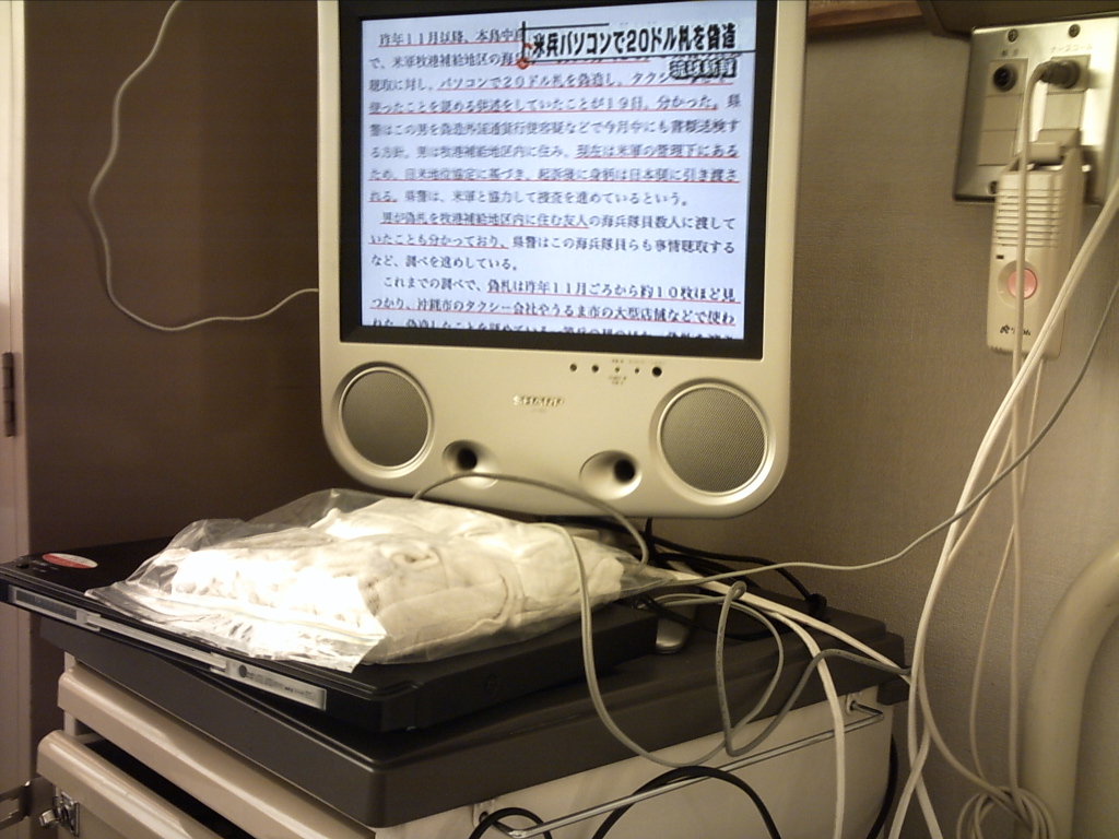 で、その大部屋は4人部屋(窓際×2と入口側×2)で窓際じゃないと室内アンテナの受信が悪く映りが非常に悪い。