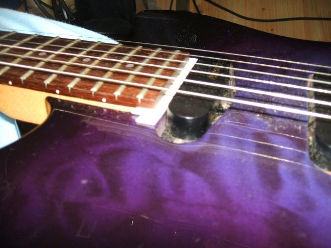 それでもって1Fに弦が当たるのか音が鳴らないのでブリッジを上げて何とか弾けるような状態になりました