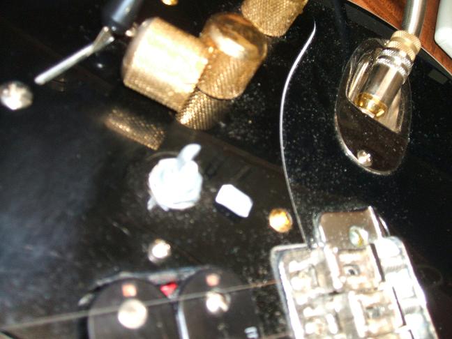 とりあえずやってみた事はボディーの裏にネックを止めているビスを緩めて表のボディーとネックの隙間に3mm位のスペーサーを入れました。