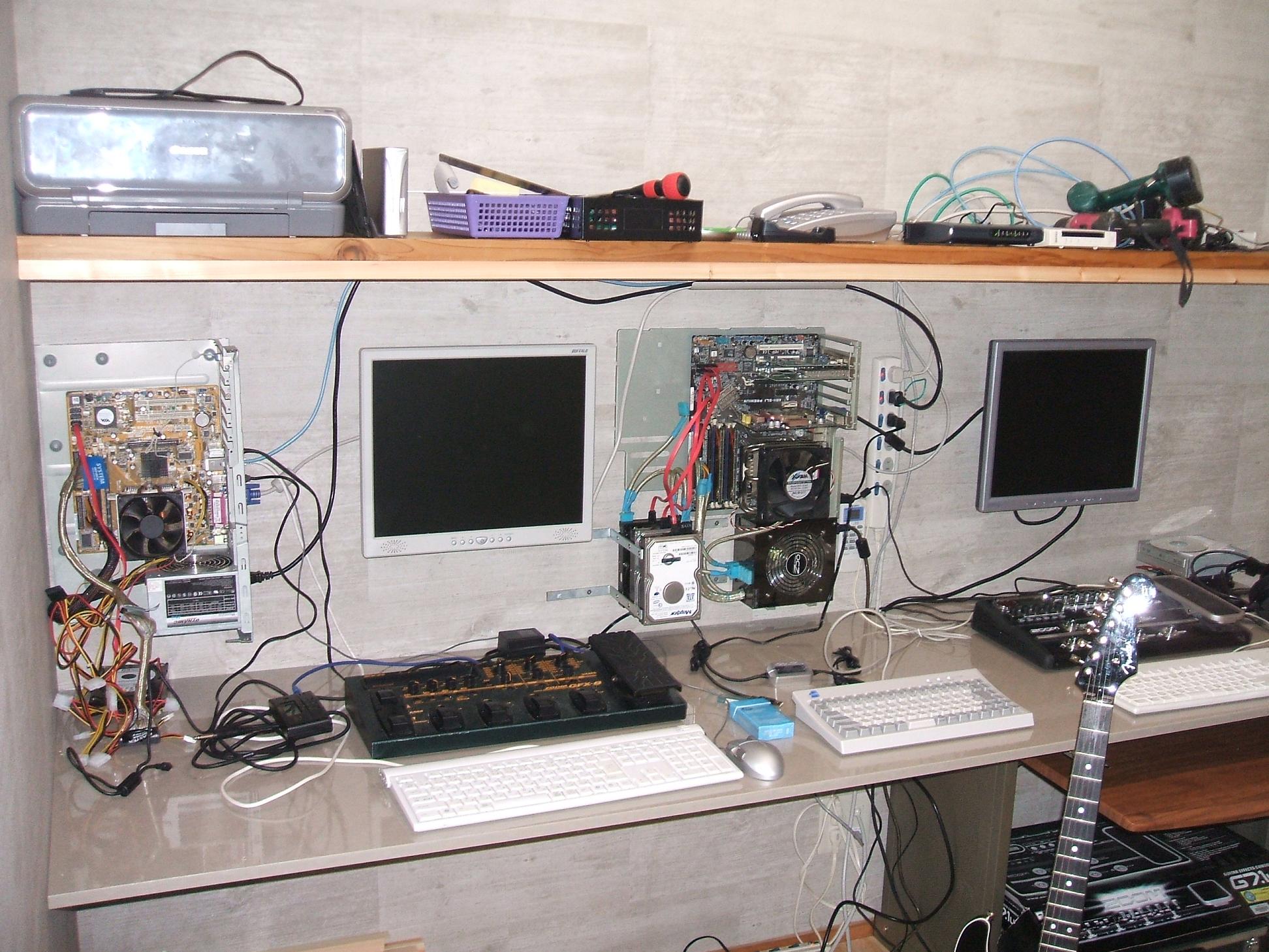 PC1台(モニターは右モニターと繋ぐ)HDD3台 DVDドライブ4台 ファンコン2つ デカプリンター 除電ブロアを「どこか」に壁付けします